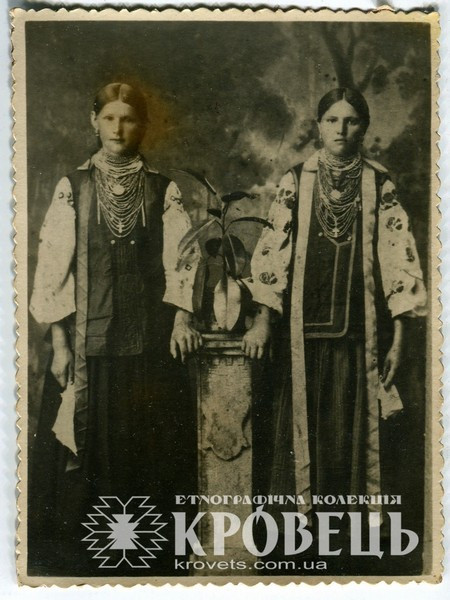 Світлина "Портрет двох дівчат" (KYD1515), Середнє Подніпров'я, Черкаська обл., Золотоніський рн., с. Драбівці, Техніка: фотодрук, Матеріали: картон, фотопапір, Автор: Невідомий, перша половина ХХст., власник експонату: Етнографічна колекція "Кровець", власник прав на фоторепродукції: Етнографічна колекція "Кровець"