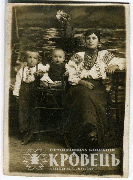 Світлина "Мати з дітьми" (KYD1520), Східне Поділля, Вінницька обл., Тульчинський рн., с. Тиманівка, Техніка: фотодрук, Матеріали: картон, фотопапір, Автор: Невідомий, перша половина ХХст., власник експонату: Етнографічна колекція "Кровець", власник прав на фоторепродукції: Етнографічна колекція "Кровець"
