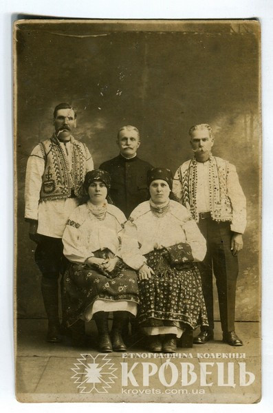 Світлина "Груповий портрет" (KYD1530), Гуцульщина, Івано-Франківська обл., Техніка: фотодрук, Матеріали: картон, фотопапір, Автор: Невідомий, перша половина ХХст., власник експонату: Етнографічна колекція "Кровець", власник прав на фоторепродукції: Етнографічна колекція "Кровець"