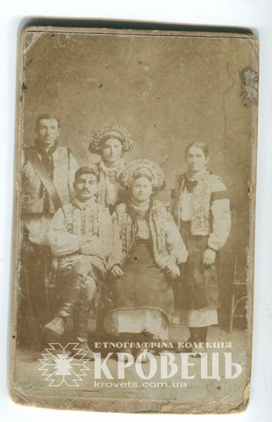 Світлина "Груповий портрет" (KYD1618), Гуцульщина, Івано-Франківська обл., Техніка: фотодрук, Матеріали: картон, фотопапір, Автор: Невідомий, перша половина ХХст., власник експонату: Етнографічна колекція "Кровець", власник прав на фоторепродукції: Етнографічна колекція "Кровець"