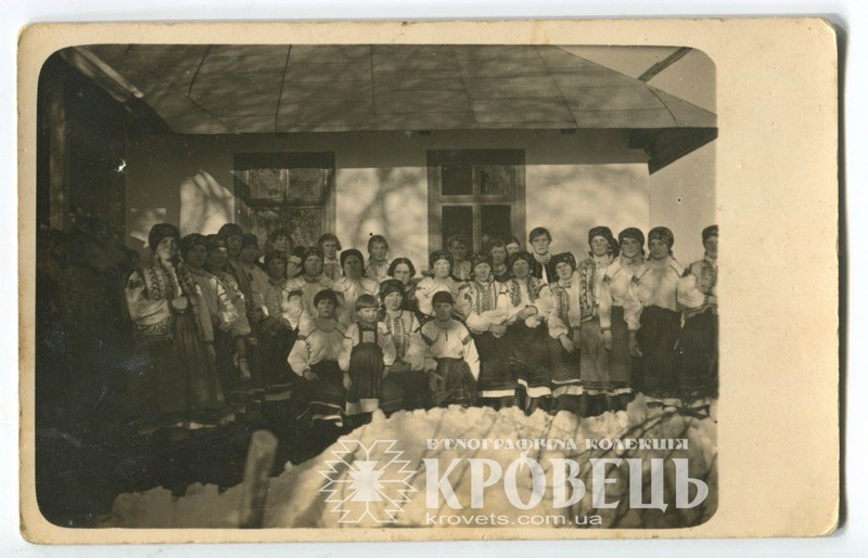 Світлина "Гурт людей" (KYD1641), Гуцульщина, Івано-Франківська обл., Техніка: фотодрук, Матеріали: картон, фотопапір, Автор: Невідомий, перша половина ХХст., власник експонату: Етнографічна колекція "Кровець", власник прав на фоторепродукції: Етнографічна колекція "Кровець"