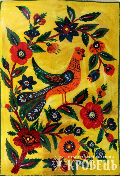Народна картина "Жар-птиця" (KYD1843), Середнє Подніпров'я, Київська обл., Переяслав-Хмельницький рн., с. Ковалин, Техніка: графічний рисунок, Матеріали: олійні фарби, папір, Автор: Буряк Марія, друга половина ХХст., власник експонату: Етнографічна колекція "Кровець", власник прав на фоторепродукції: Етнографічна колекція "Кровець"