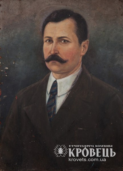 Автопортрет Панаса Ярмоленка (KYD1917), Середнє Подніпров'я, Київська обл., Переяслав-Хмельницький рн., с. Лецьки, Техніка: живопис, Матеріали: олійні фарби, полотно, фанера, Автор: Ярмоленко Панас Миколайович, середина ХХст., власник експонату: Етнографічна колекція "Кровець", власник прав на фоторепродукції: Етнографічна колекція "Кровець"