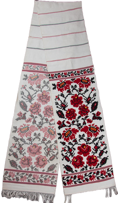 Рушник тканий (KYD2629), Середнє Подніпров'я, Київська обл., Переяслав-Хмельницький рн., Техніка: ткання, Матеріали: нитки бавовняні, нитки конопляні, Автор: Невідомий, перша половина ХХст., власник експонату: Етнографічна колекція "Кровець", власник прав на фоторепродукції: Етнографічна колекція "Кровець"