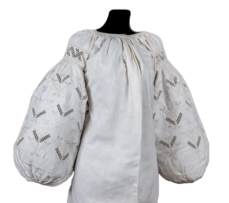 Сорочка жіноча (KYD3248), Середнє Подніпров'я, Київська обл., Переяслав-Хмельницький рн., с. Мала Каратуль, Техніка: шиття, Матеріали: домоткане полотно, нитки, Автор: Невідомий, перша половина ХХст., власник експонату: Етнографічна колекція "Кровець", власник прав на фоторепродукції: Етнографічна колекція "Кровець"