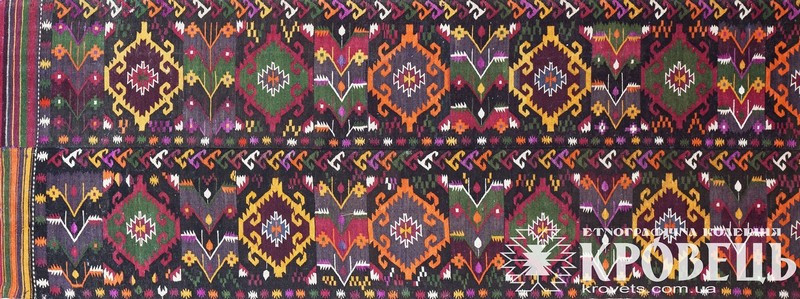 Килим горизонтальний (KYD701), Східне Поділля, Хмельницька обл., Новоушицький рн., с. Зелені Курилівці, Техніка: ткання, Матеріали: нитки вовняні, нитки конопляні, Автор: Невідомий, початок ХХст., власник експонату: Етнографічна колекція "Кровець", власник прав на фоторепродукції: Етнографічна колекція "Кровець"